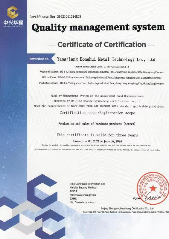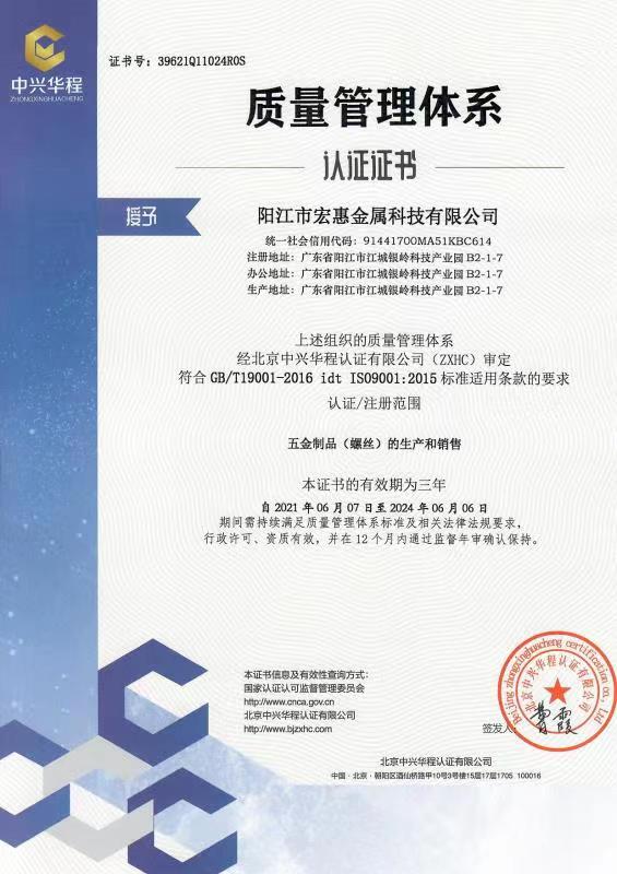 廣東宏惠金屬公司是家20多年一直專注鉆尾螺絲開發(fā)與生產(chǎn)的企業(yè),是國內(nèi)較早做鉆尾的廠家之一,同時也是國內(nèi)專業(yè)開發(fā)生產(chǎn)鉆尾螺絲的企業(yè)之一。 我司地址為于廣東省陽江市江銀嶺科技園距沈海高速白沙出口不到2公里,距陽江高鐵站也只有十余公里交通便利。 公司占地120畝,擁有超500臺套專業(yè)設(shè)計 生產(chǎn) 檢測設(shè)備。一個超200人的專業(yè)團隊,能夠嚴(yán)格按照ISO9001質(zhì)量體系要求生產(chǎn)符合GB DIN AS3566 ANSI JIS BS等標(biāo)準(zhǔn)的產(chǎn)品,生產(chǎn)銷售各種高品質(zhì)緊固件系列產(chǎn)品,為中高端客戶提供優(yōu)質(zhì)服務(wù)。也可按照客戶要求設(shè)計生產(chǎn)各種鉆尾,年產(chǎn)高品質(zhì)碳鋼 不銹鋼鉆尾螺絲2萬余噸.在各大客戶的鼎力支持下產(chǎn)品暢銷全國,并遠(yuǎn)銷亞 非 拉 歐等地,在這20多年發(fā)展的道路上我司堅持“以質(zhì)量求生存,以信譽求發(fā)展”的精神理念不斷完善公司體系。